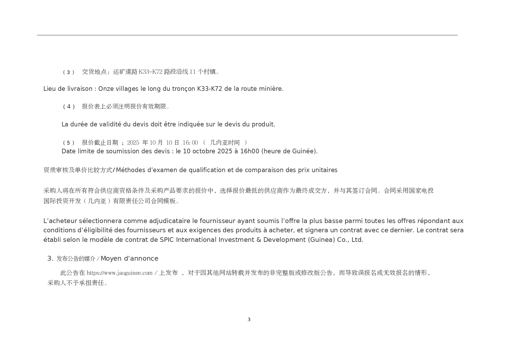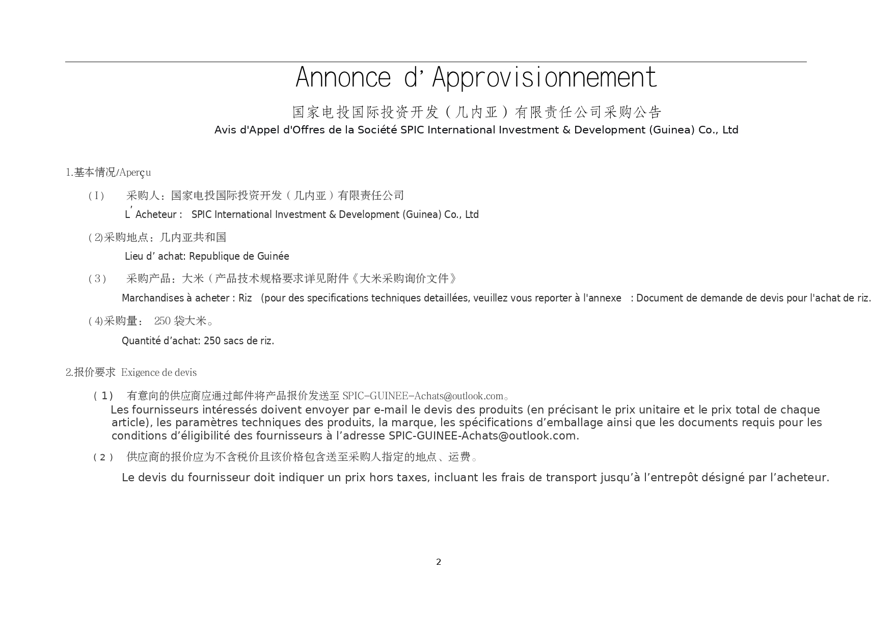> Annonce d'approvisionnement de 250 Sacs de Riz