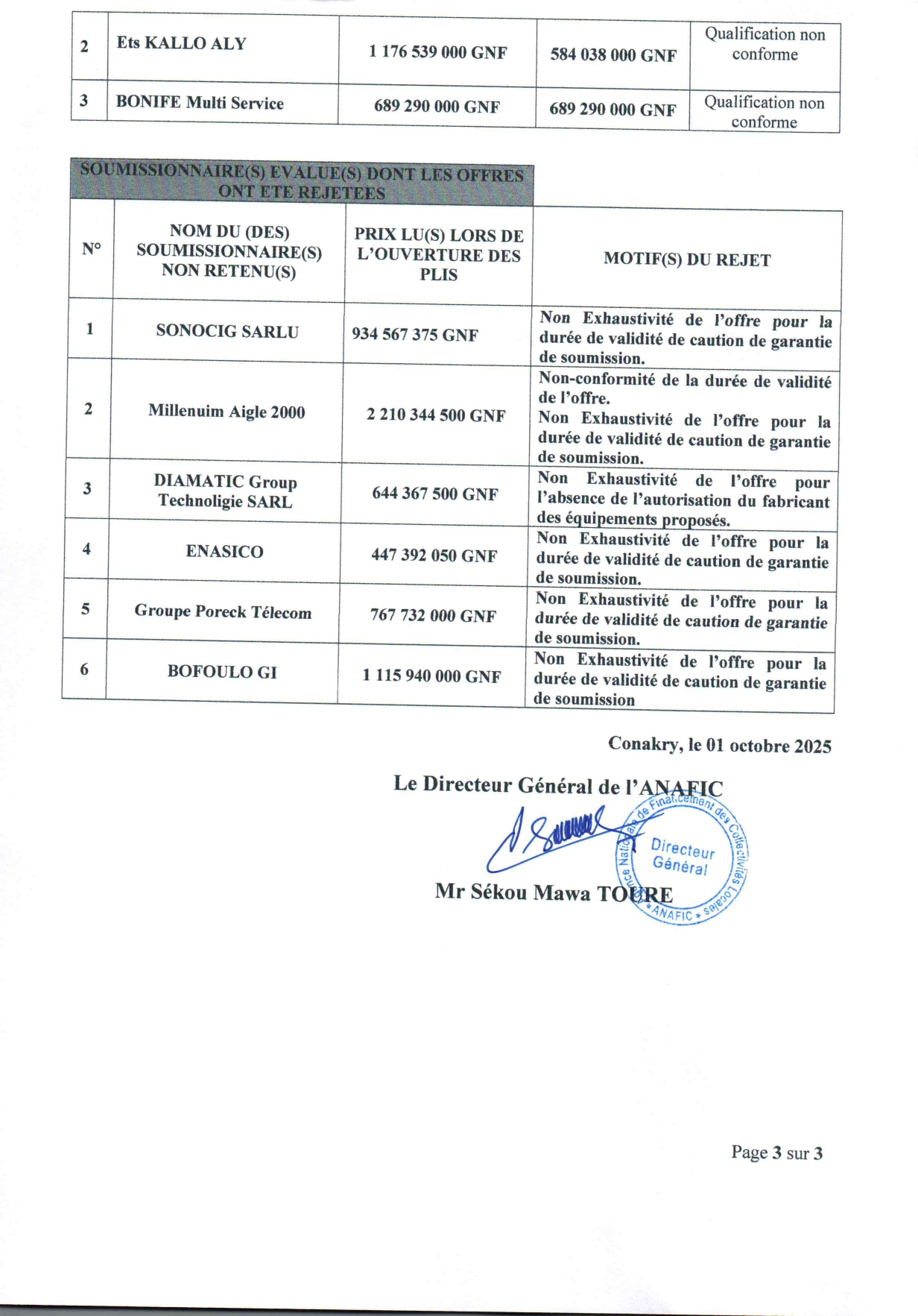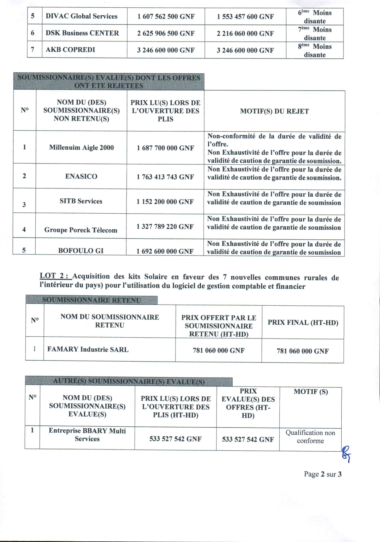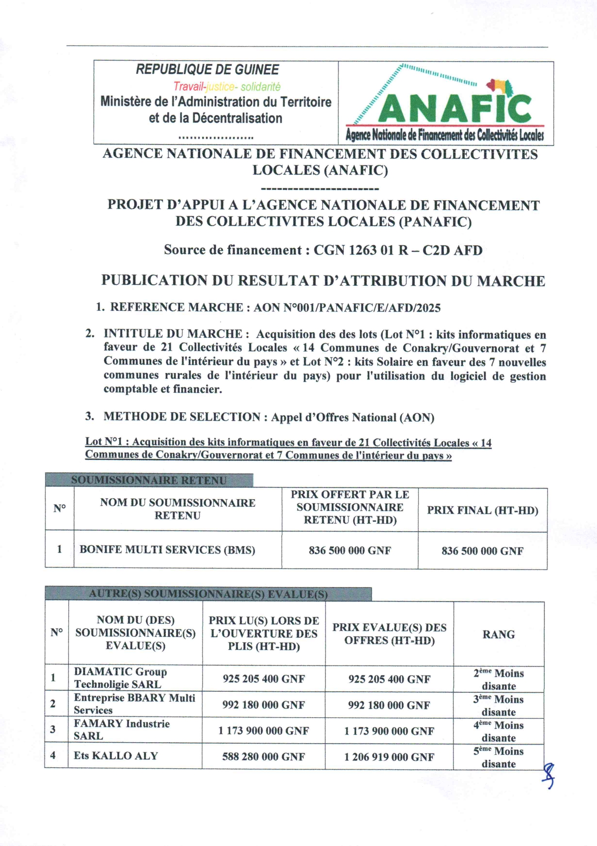 > PUBLICATION DU RESULTAT D'ATTRIBUTION DU MARCHE