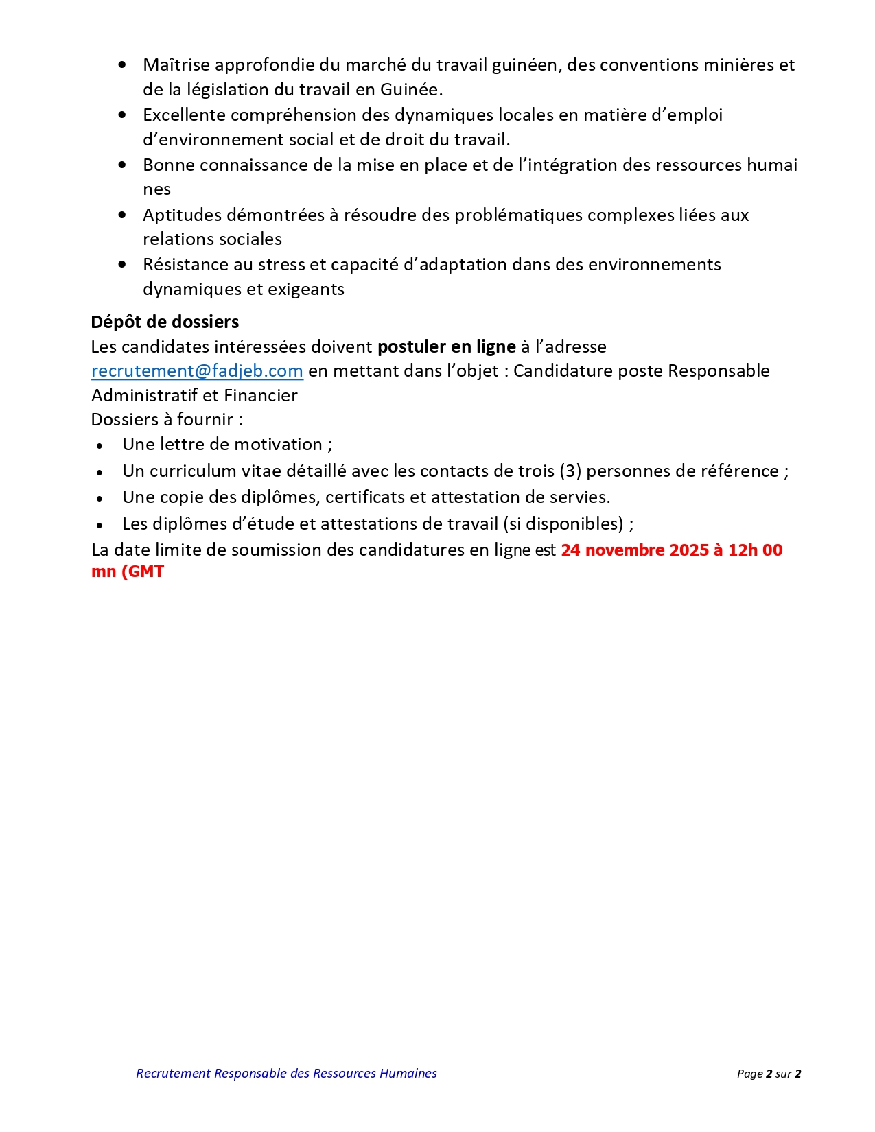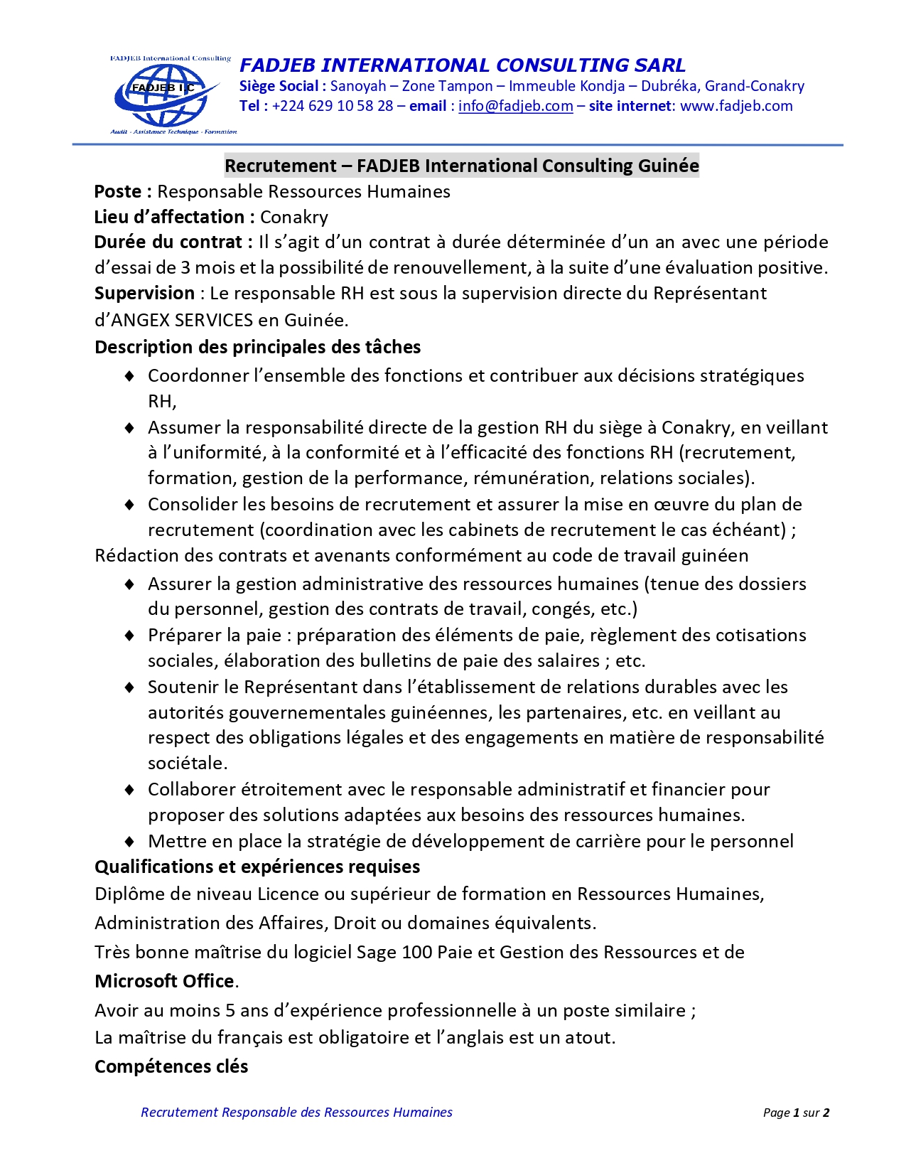 > Avis de recrutement d'un Responsable Ressources Humaines