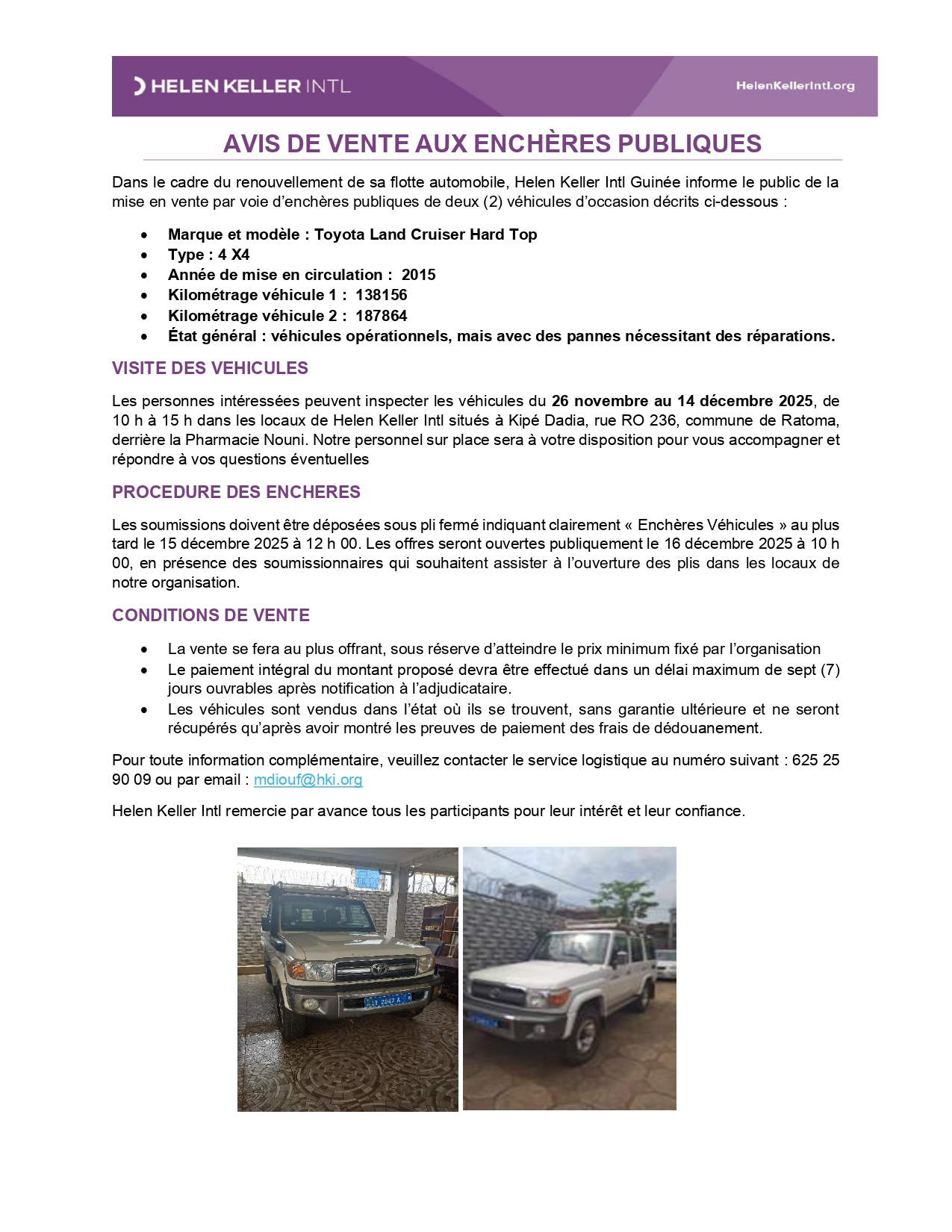 > AVIS DE VENTE AUX ENCHÈRES PUBLIQUES