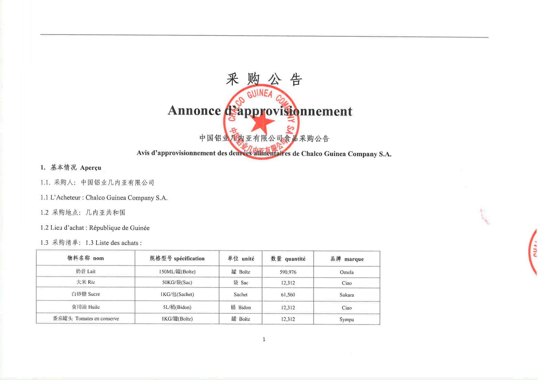 > Avis d'approvisionnement des denrées alimentaires de chalco