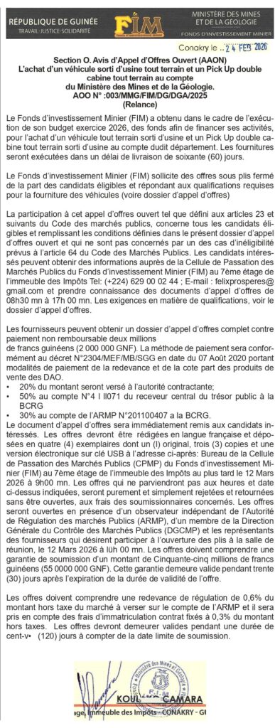 Le Journal des appels d’offres et offres d’emplois de Guinée est une plateforme dédiée à la publication et à la diffusion des appels d’offres publics et privés ainsi que des offres d’emplois en Guinée. Le site accompagne entreprises, institutions et professionnels dans leur recherche d’opportunités, en proposant un service actualisé et fiable pour rester informé des marchés et recrutements à travers le pays