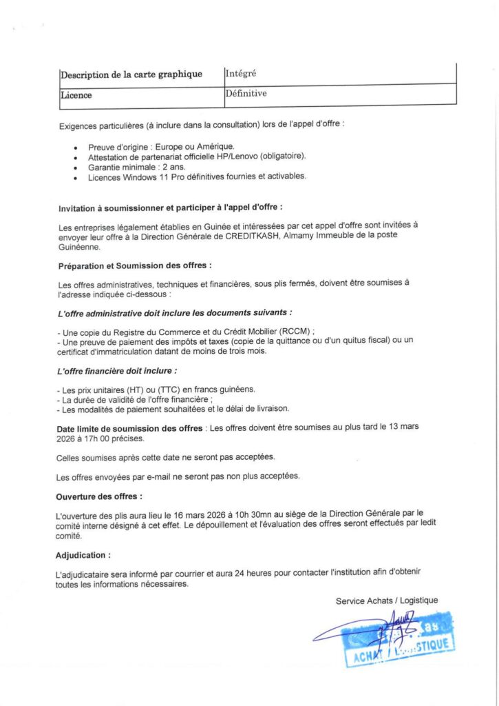 Avis d’appel d’offres pour l’acquisition de quinze machines (Ordinateurs)