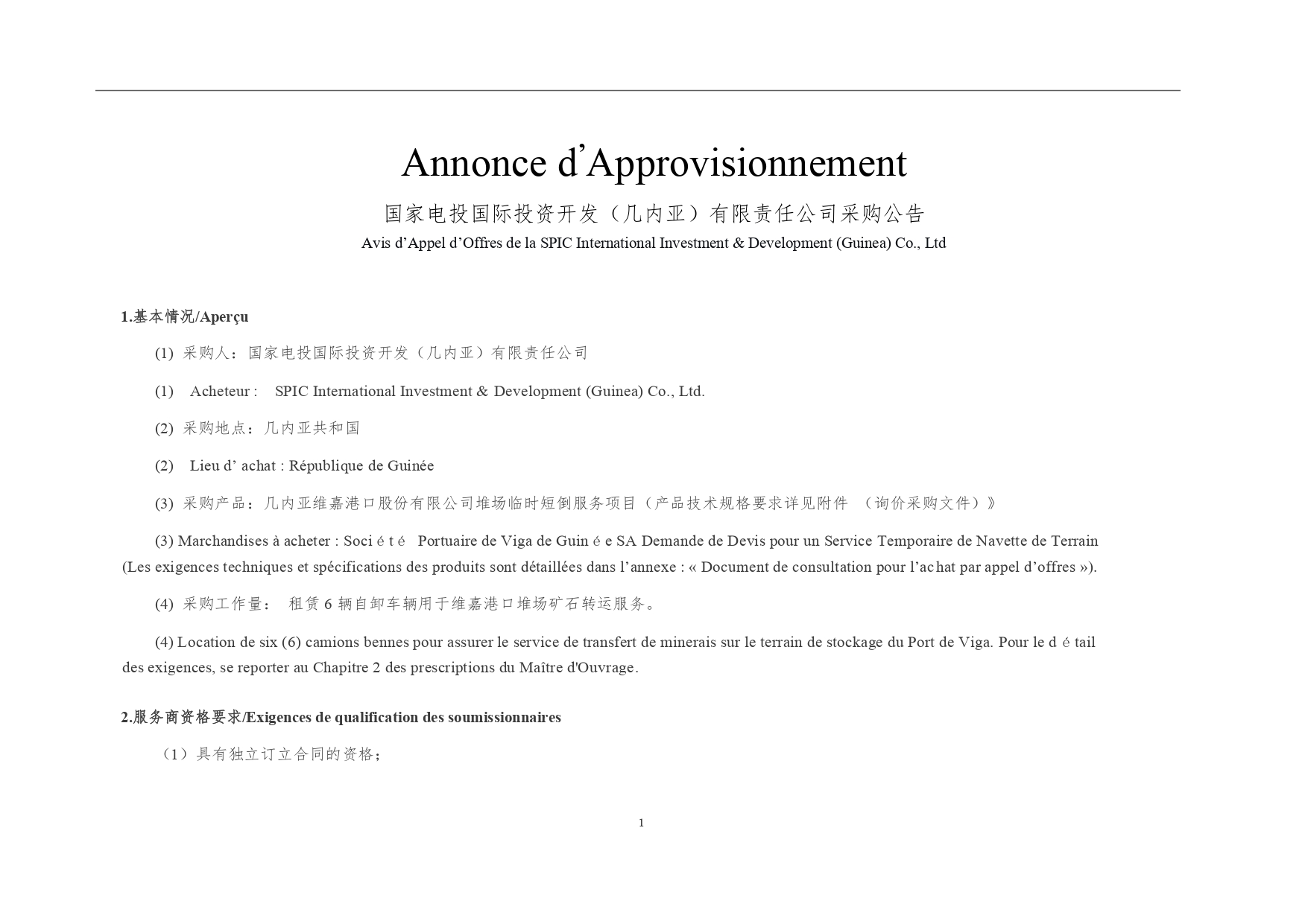 Avis d’appel d’offres pour le recrutement de Société Portuaire de Viga de Guinée SA Demande de Devis pour un Service Temporaire de Navette de Terrain