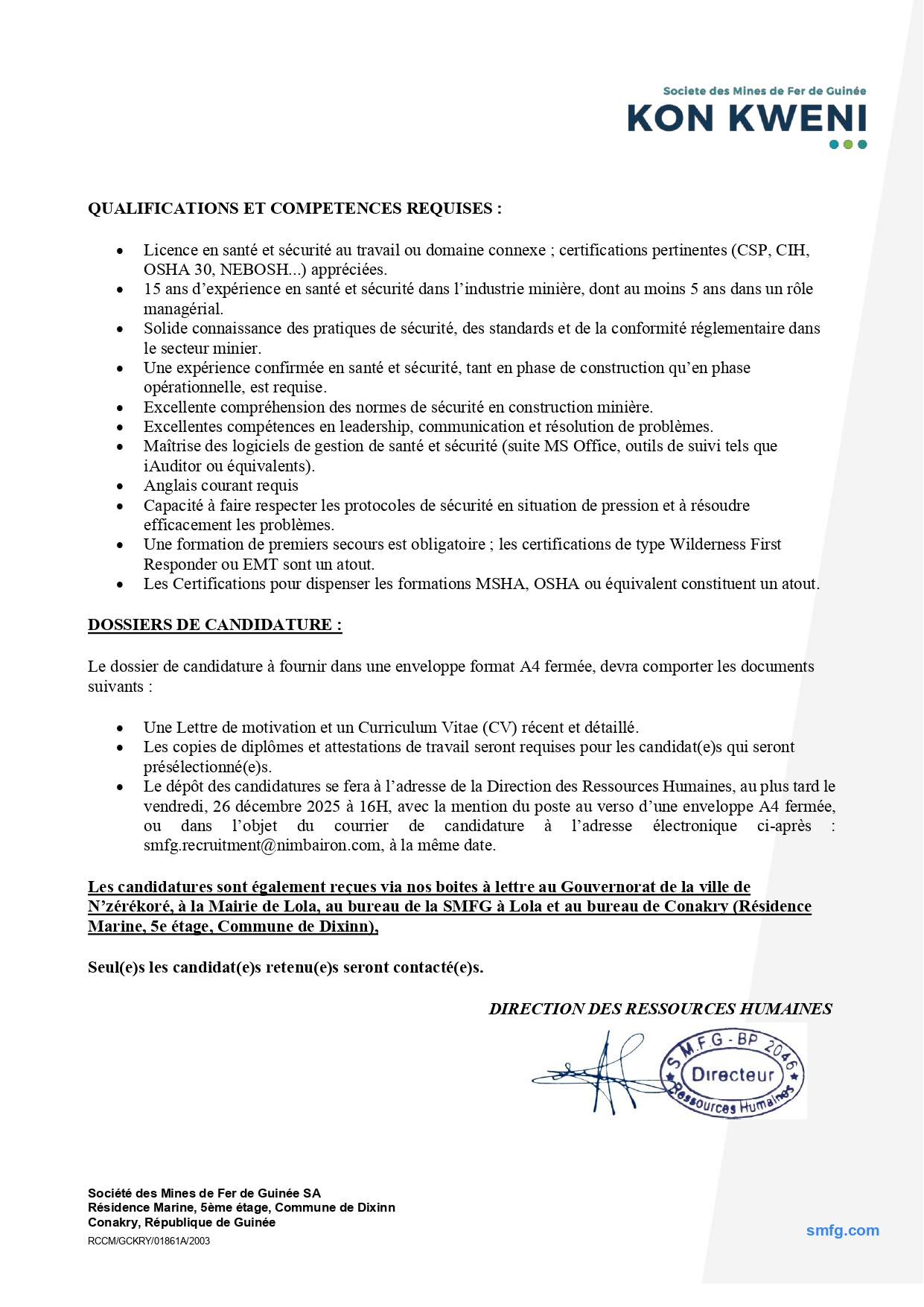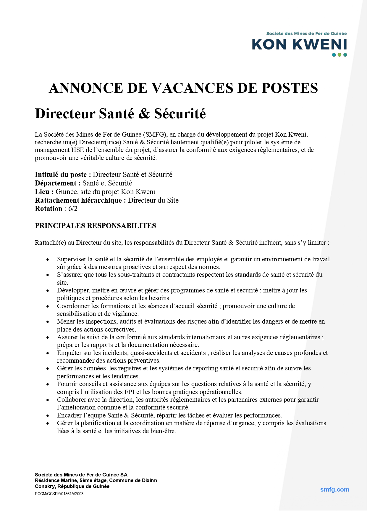 Avis de Recrutement d’un Directeur Santé & Sécurité