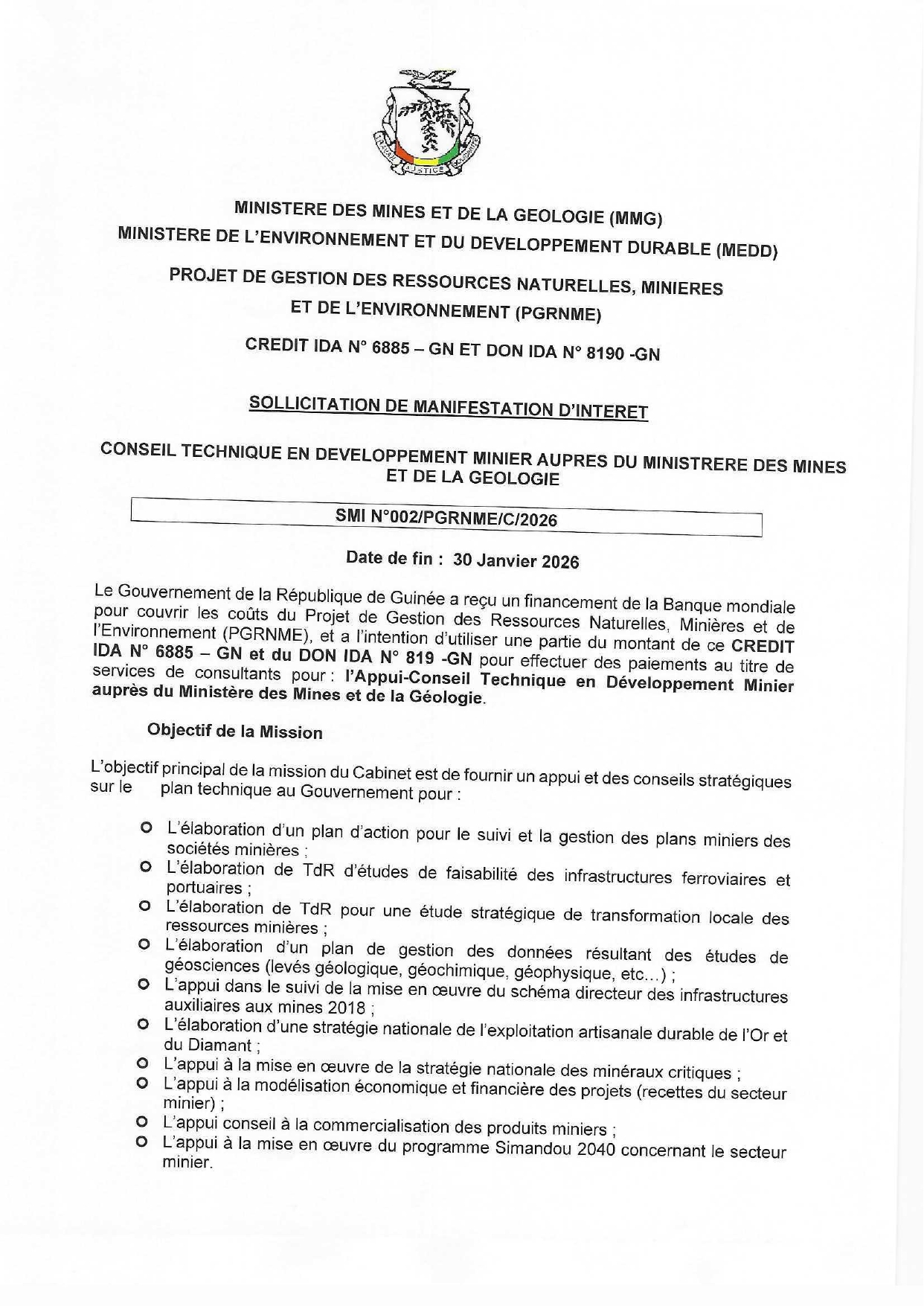 Télécharger l’avis complet en PDF: SOLLICITATION DE MANIFESTATION D’INTERET