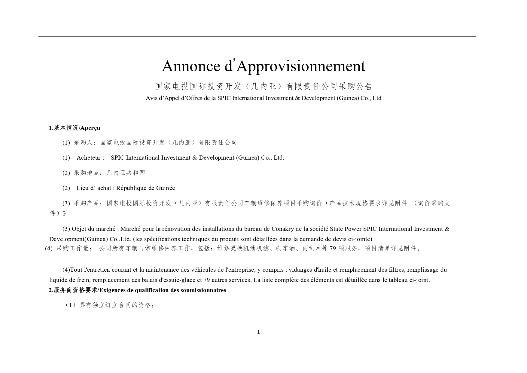 Annonce d’approvisionnement pour tout l’entretien courant et la maintenance des véhicules de l’entreprise
