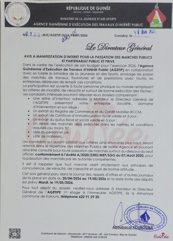 AVIS A MANIFESTATION D’INTERET POUR LA PASSATION DES MARCHES PUBLICSET PARTENARIAT PUBLIC ET PRIVE