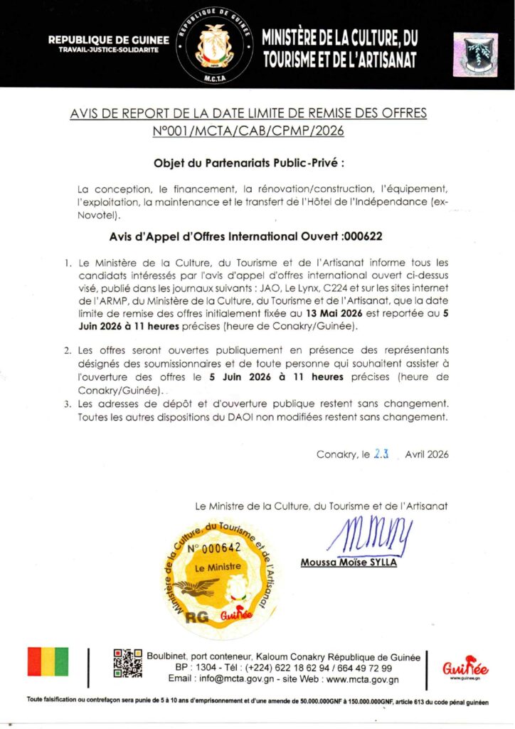 Partenariats Public-Privé : La conception, le financement, la rénovation/construction, l’équipement, l’exploitation, la maintenance et le transfert dè l’Hôtel de l’Indépendance (ex- Novotel).
