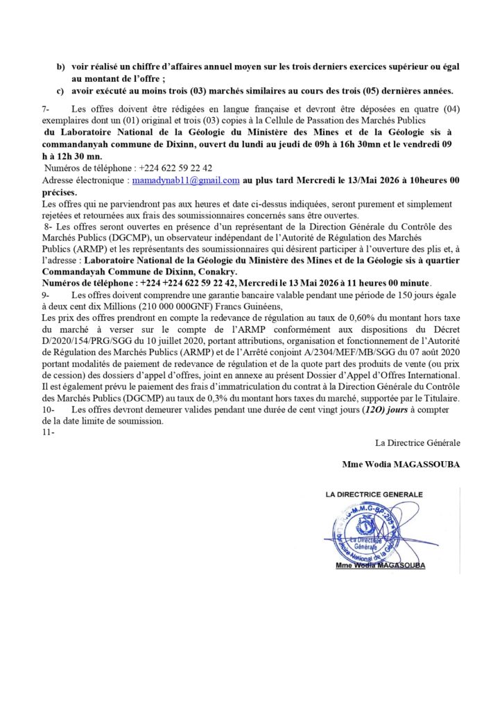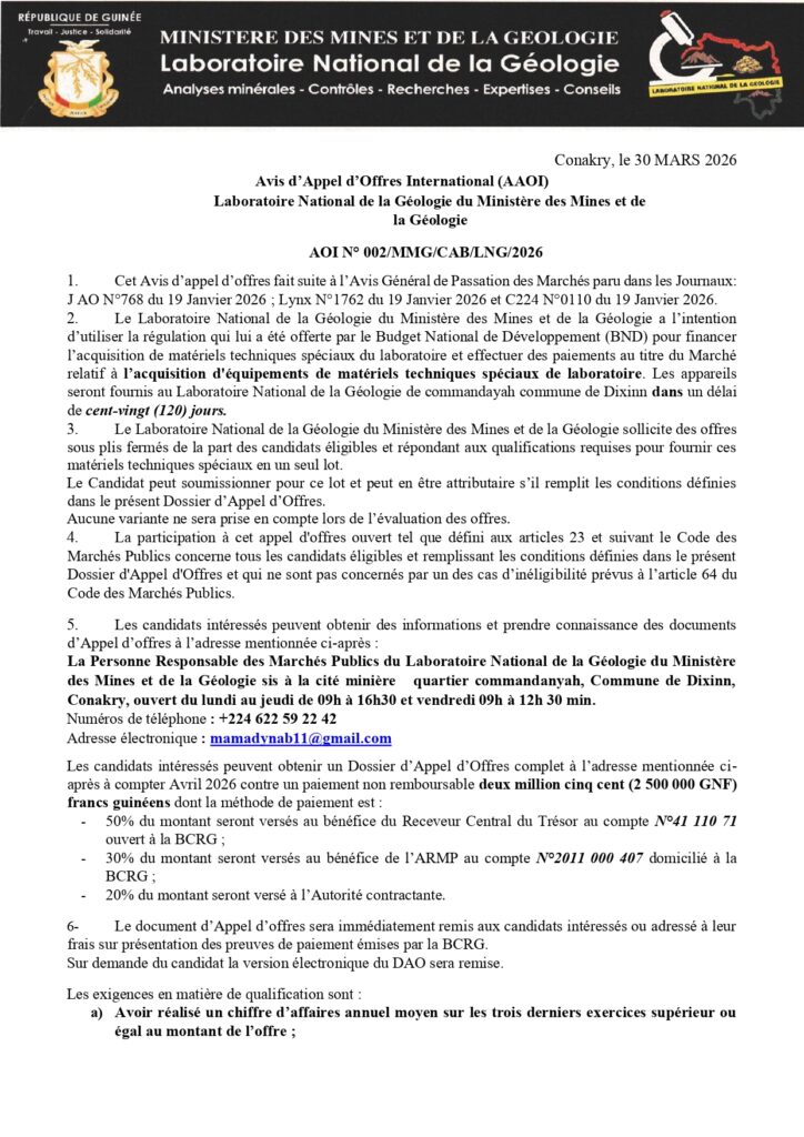 Avis d’appel d’offres International pour le Marché relatif à l’acquisition d’équipements de matériels techniques spéciaux de laboratoire.