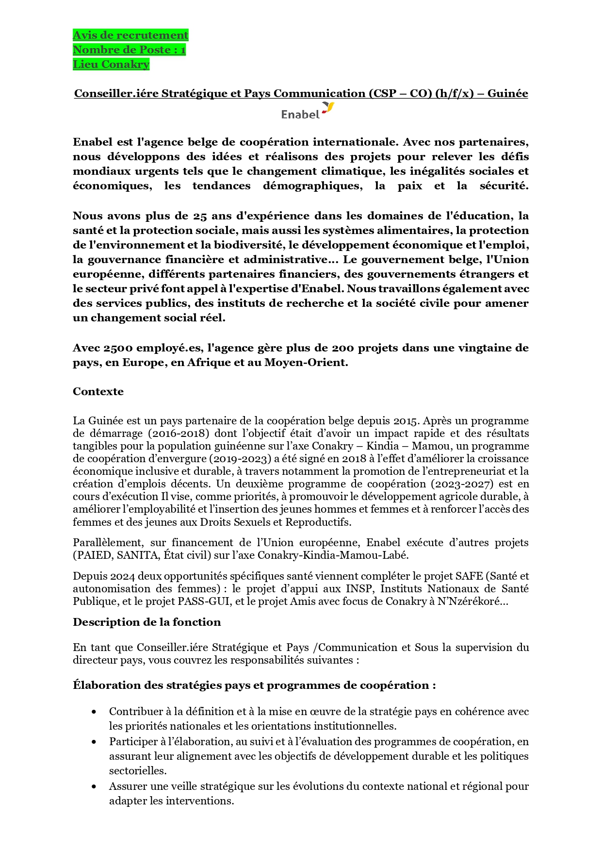 (CSP – CO) (enabel.be) seront prises en considération et seul (s)