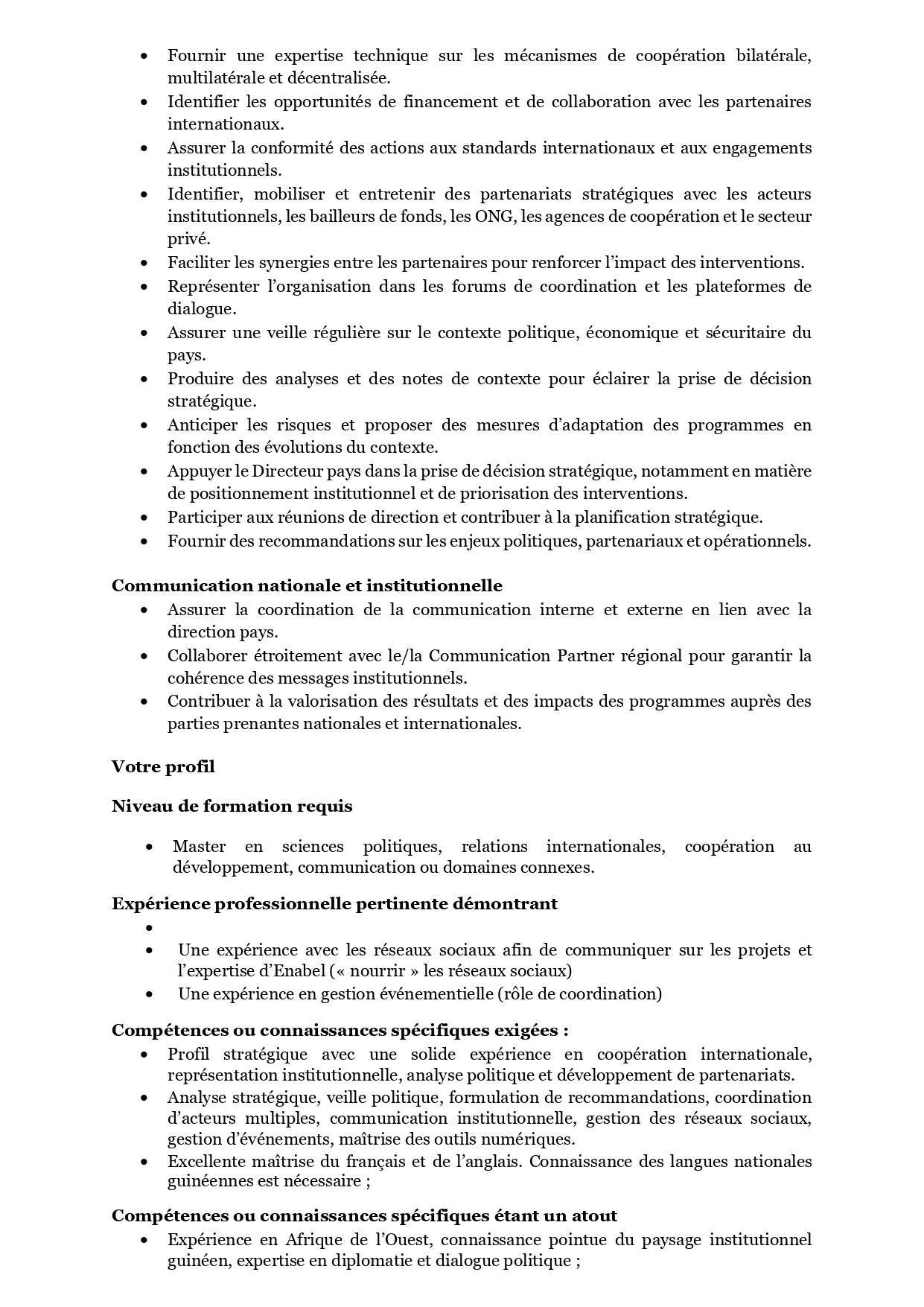 > Avis de recrutement d'un.e Conseiller.iére Stratégique et Pays Communication (CSP – CO) (h/f/x) – Guinée