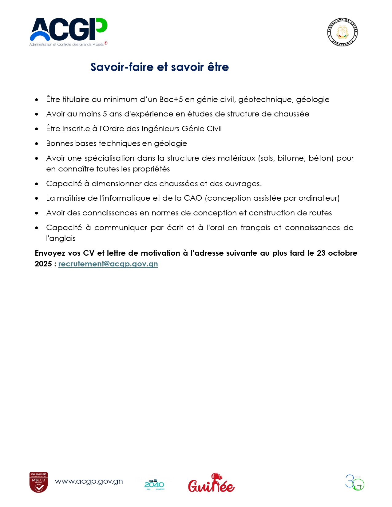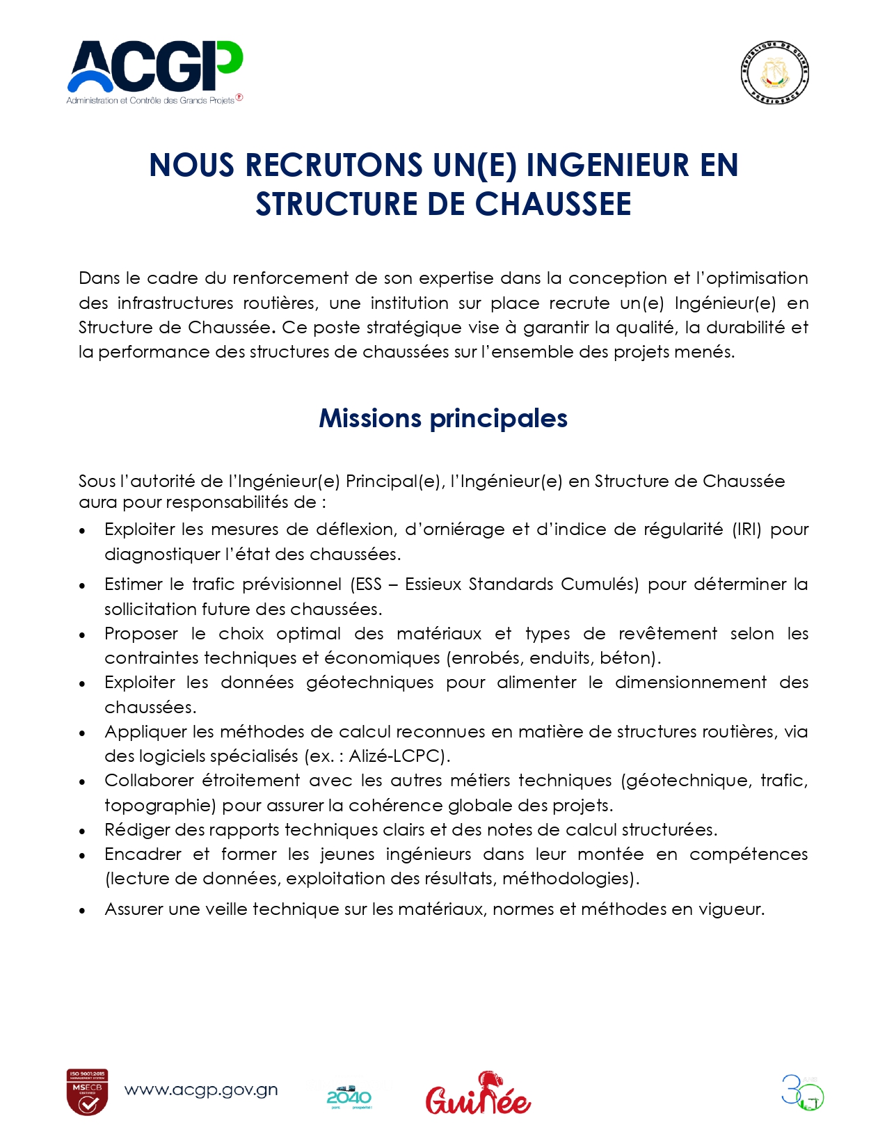 > AVIS DE RECRUTEMENT D'UN(E) INGENIEUR EN STRUCTURE DE CHAUSSEE