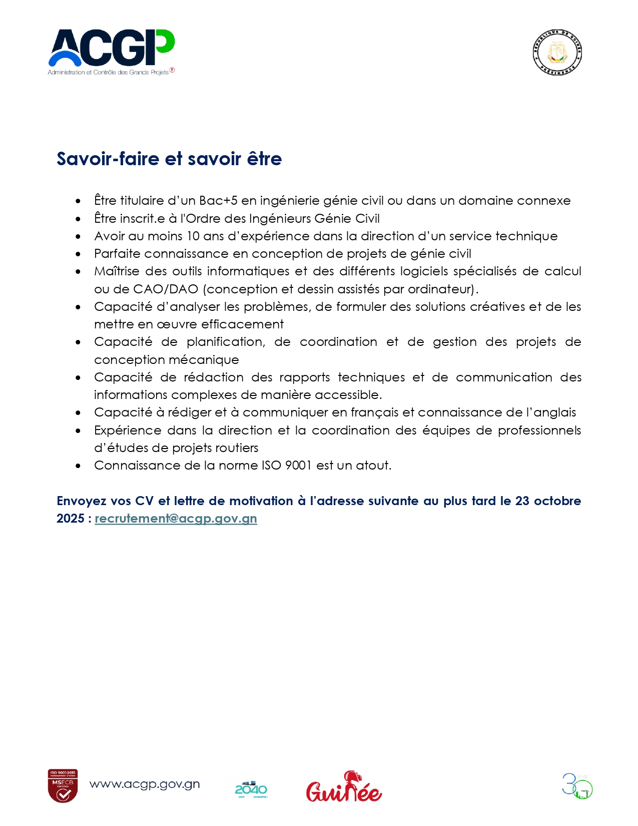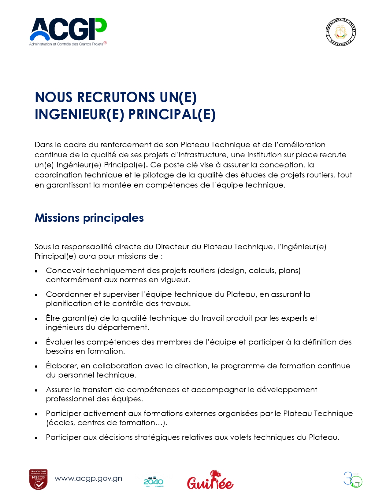 > AVIS DE RECRUTEMENT D'UN(E) INGENIEUR(E) PRINCIPAL(E)