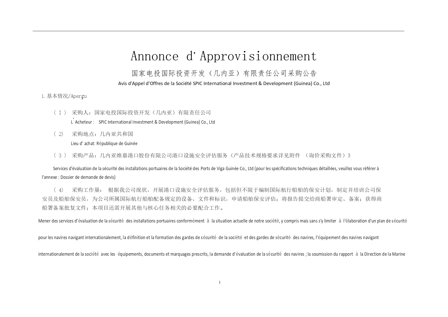 > Appel d'Offres pour les Services d'Évaluation de la Sécurité des Installations Portuaires de la Société Portuaire de Verga Guinée S.A.
