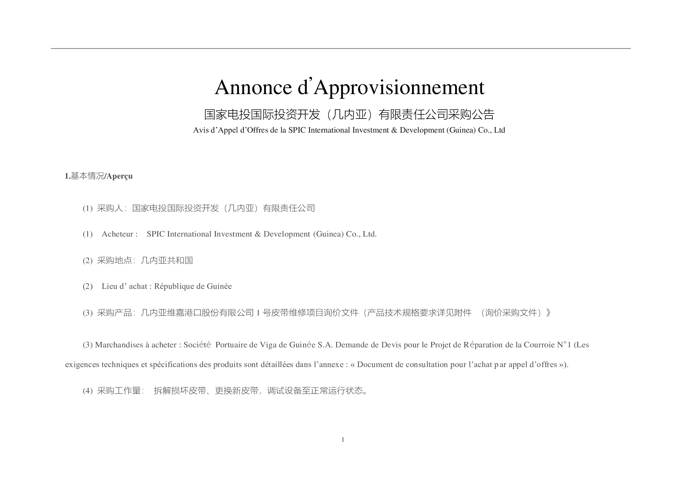 > Société Portuaire de Viga de Guinée S.A. Demande de Devis pour le Projet de Réparation de la Courroie N°1
