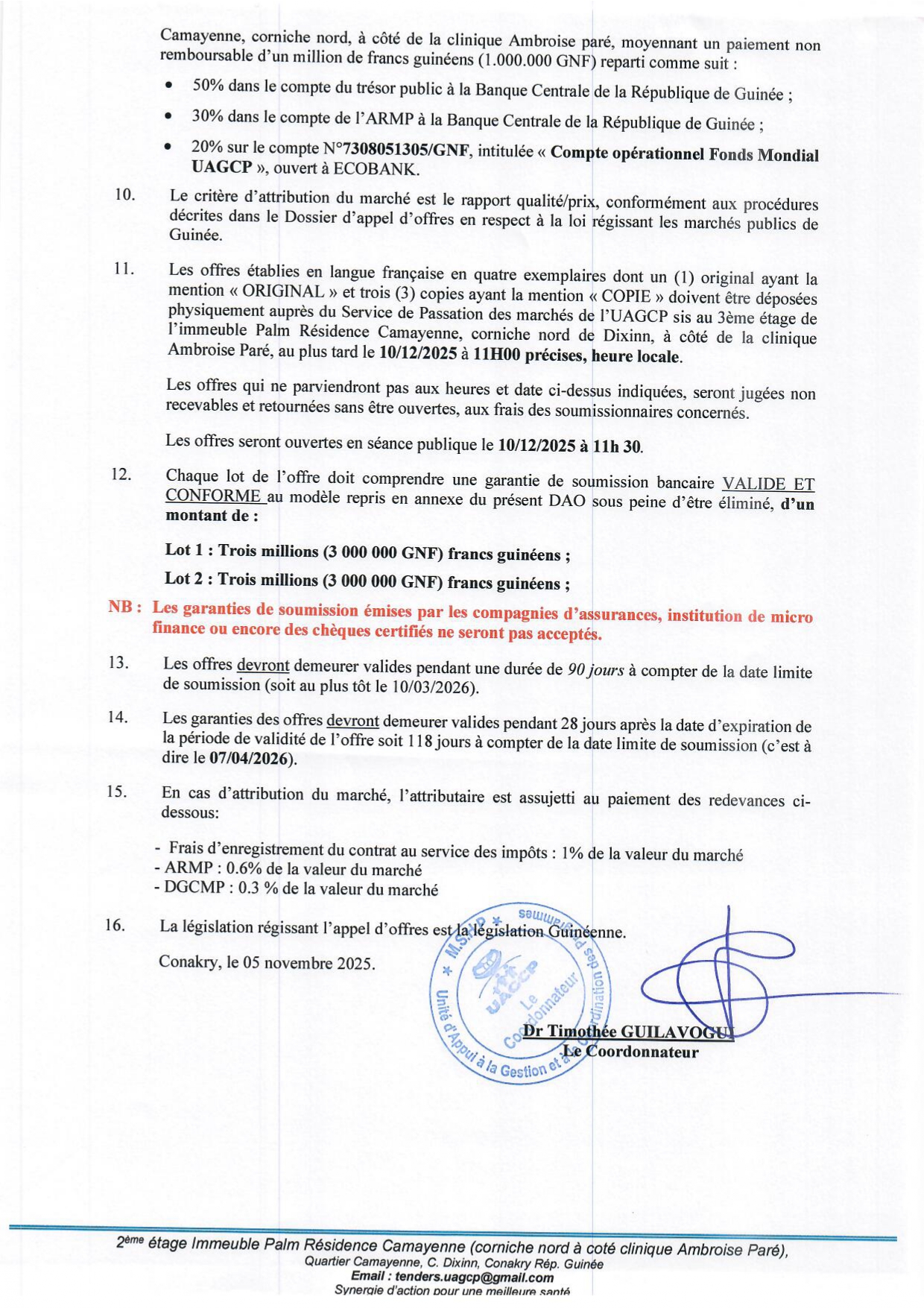 > AVIS D'APPEL D'OFFRES POUR LA FOURNITURE, LIVRAISON ET INSTALLATION D’EQUIPEMENTS ET MOBILIER MEDICAUX AU PROFIT DE 10 SITES DE PRISE EN CHARGE VIH A GRANDE COHORTE.