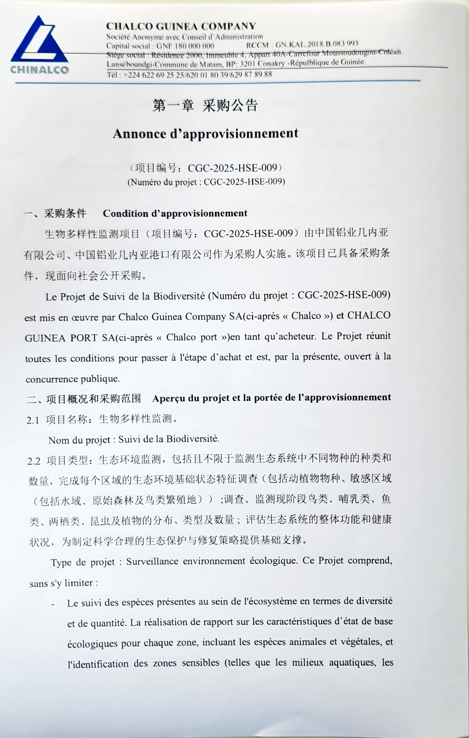 > Dossier d’approvisionnement pour le projet de suivi de la biodiversité