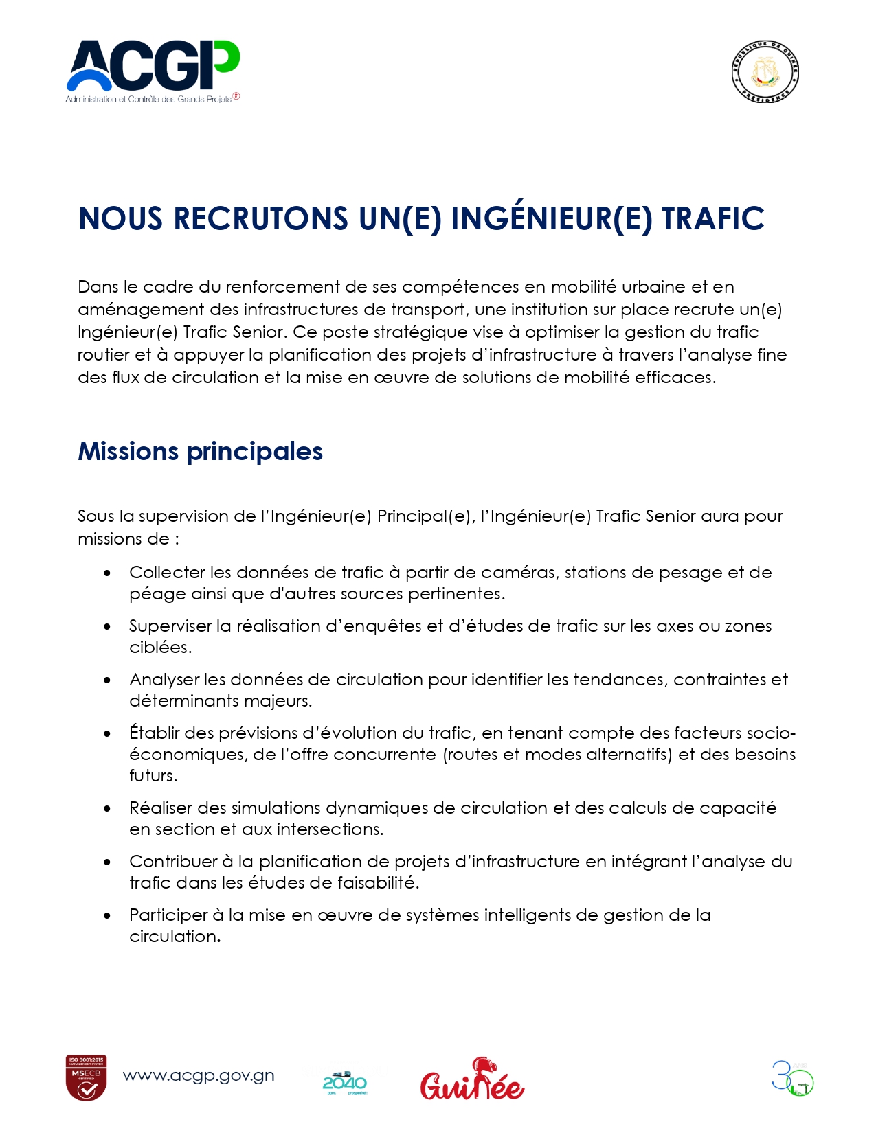 > AVIS DE RECRUTEMENT D'UN(E) INGÉNIEUR(E) TRAFIC